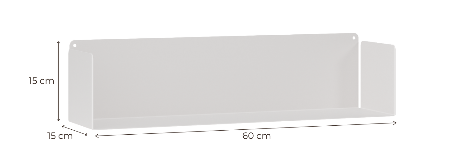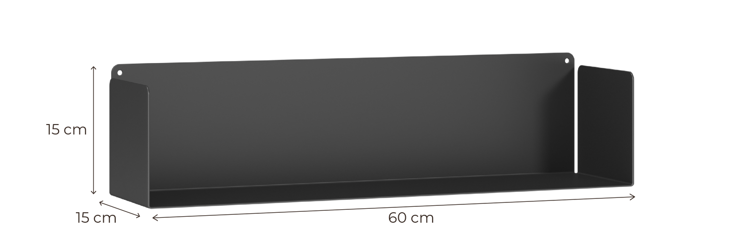 Gracias a sus 60 cm de longitud, cada estante ofrece una superficie amplia para exhibir y almacenar libros, plantas, objetos decorativos, utensilios de cocina o material de oficina, manteniendo todo siempre visible y accesible. Su diseño abierto facilita la organización y convierte cada objeto en parte de la decoración.