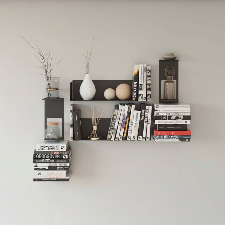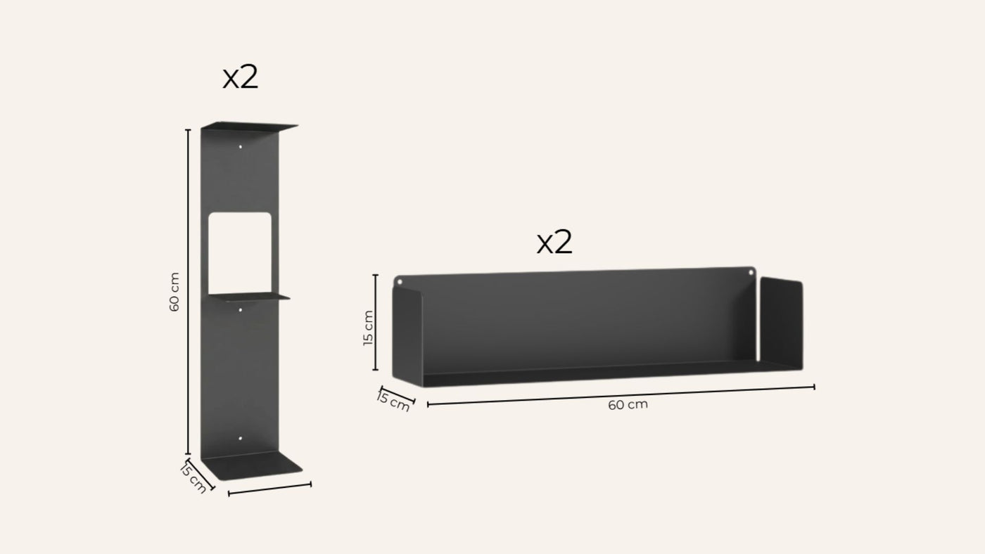 Nuestros estantes están diseñados para soportar hasta aproximadamente 15 kg, perfectos para tus necesidades de almacenamiento (libros, decoración, CDs …)