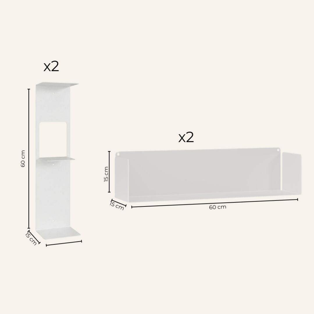 Cada estante Astrid está elaborado en chapa metálica de 2 mm de grosor, cortada a láser y plegada a mano, lo que garantiza una estructura sólida, estable y duradera. Gracias a su cuidada fabricación, cada balda puede soportar hasta 15 kg de peso, permitiendo colocar con total seguridad libros, objetos decorativos, plantas o elementos de uso diario.