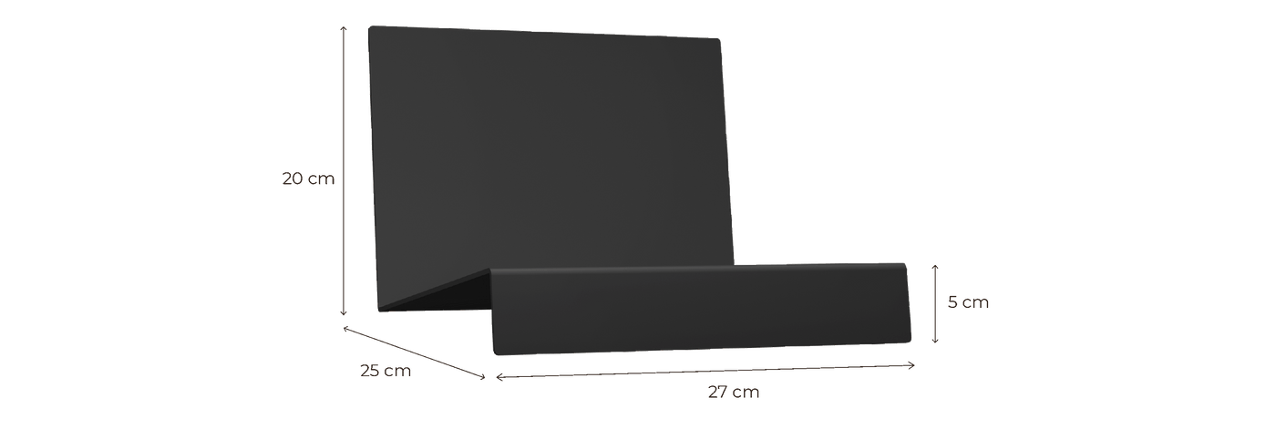 Fabricado en chapa de acero de 3 mm de grosor y lacado al horno en acabado mate, este soporte para vinilos no solo es visualmente atractivo, sino también extremadamente robusto. Su forma en ángulo permite mostrar la portada del disco de forma elegante, convirtiéndola en parte de la decoración del espacio.